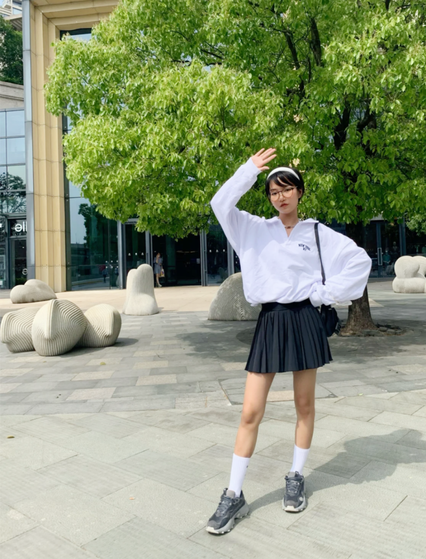 或者上身搭配衛衣也很好看,青春活力的樣子,永遠18歲~