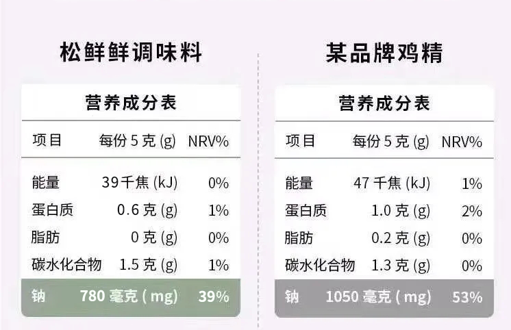 相比同類的雞精等品牌,松茸鮮蔬粉鈉含量較低。