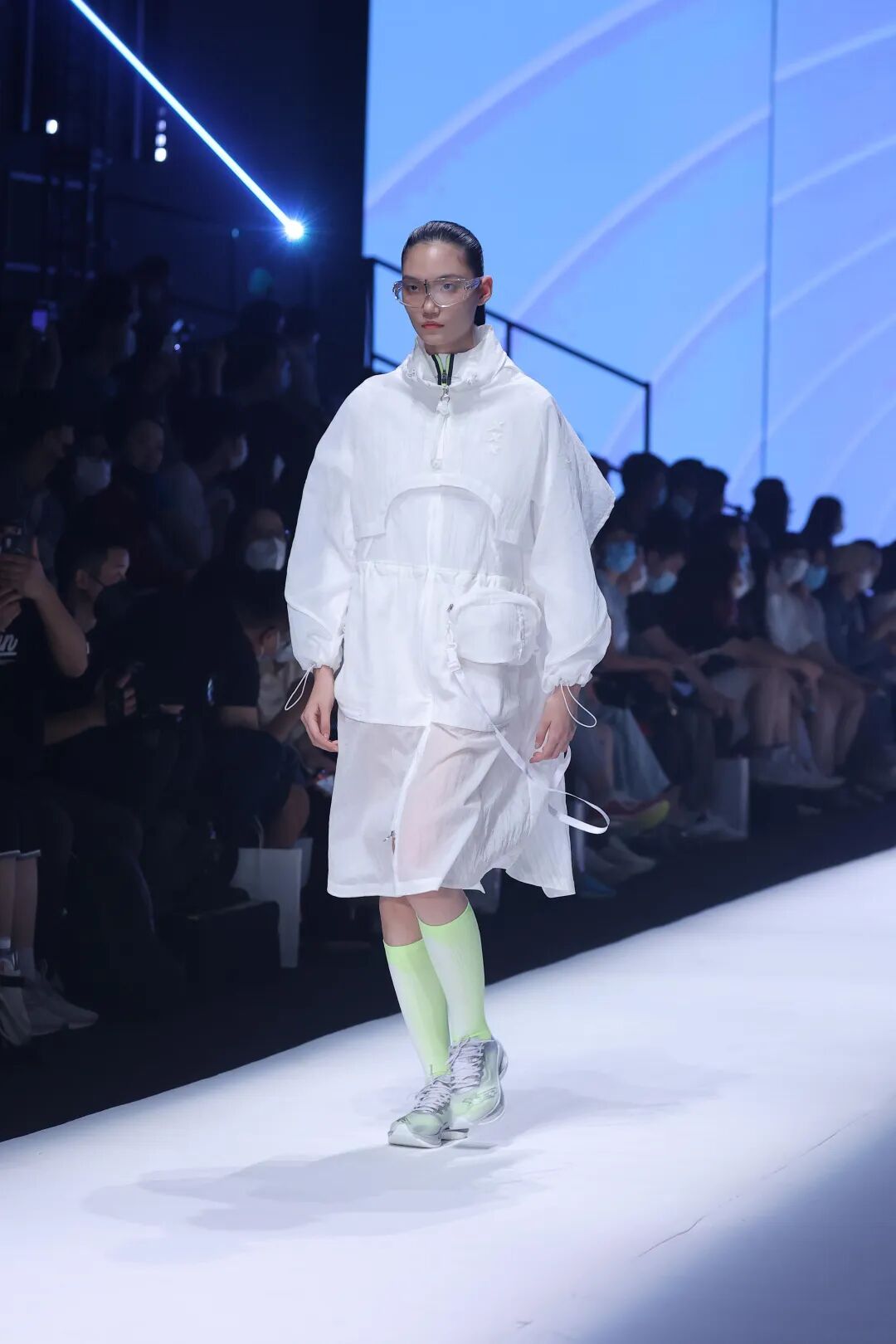 網紗拼接能提升透氣性,更貼合了消費者對舒適清爽的追求,隱約的透視效果與細網眼的壓褶材質提升單品時尚屬性。