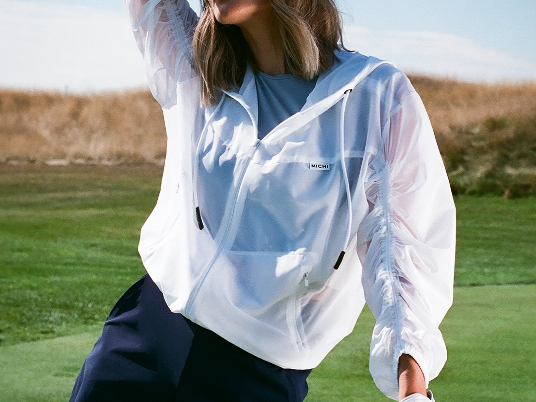 利用彈力抽繩來調節袖子長度,為防曬服增添一項功能性,在袖子位置抽褶增加更多量感,輕盈且柔美,也可嘗試在領口,下襬、袖口等不同位置加入該元素豐富單品設計點。