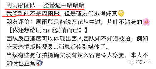 另有網友爆料說,周雨彤團隊一臉懵逼中,稱被拍到的翟瀟聞女友並不是周雨彤。不過,截至目前,周雨彤方並未闢謠戀情一事。