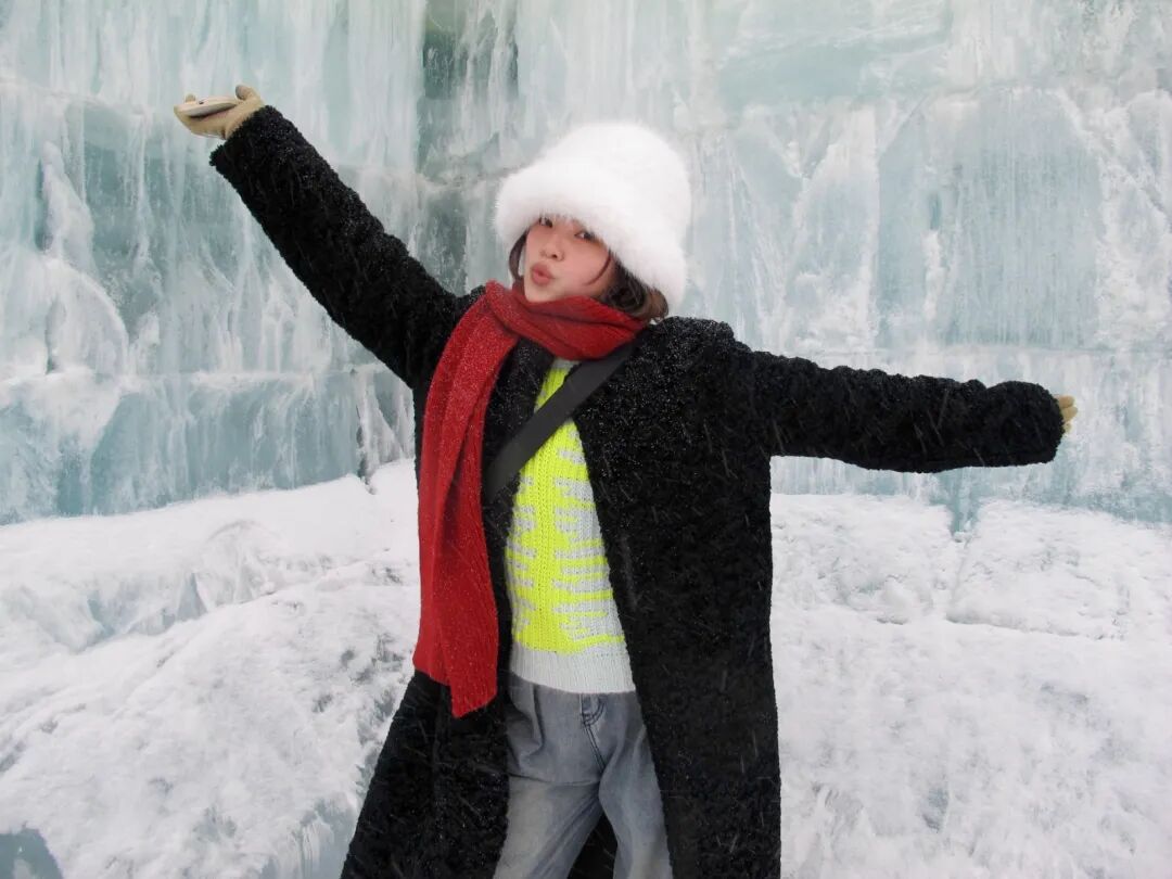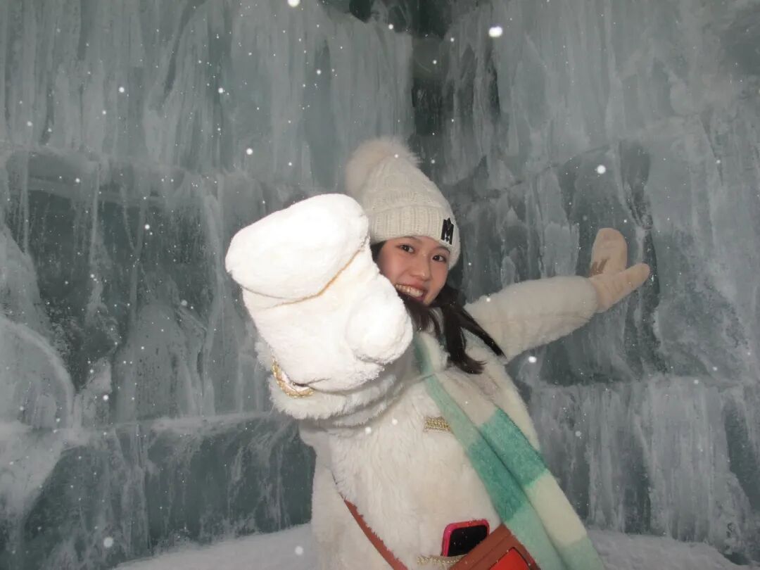 冰川雪景也能實現,只需略顯輕鬆地往大冰雕前面一站,這是穿越到冰島了嗎???