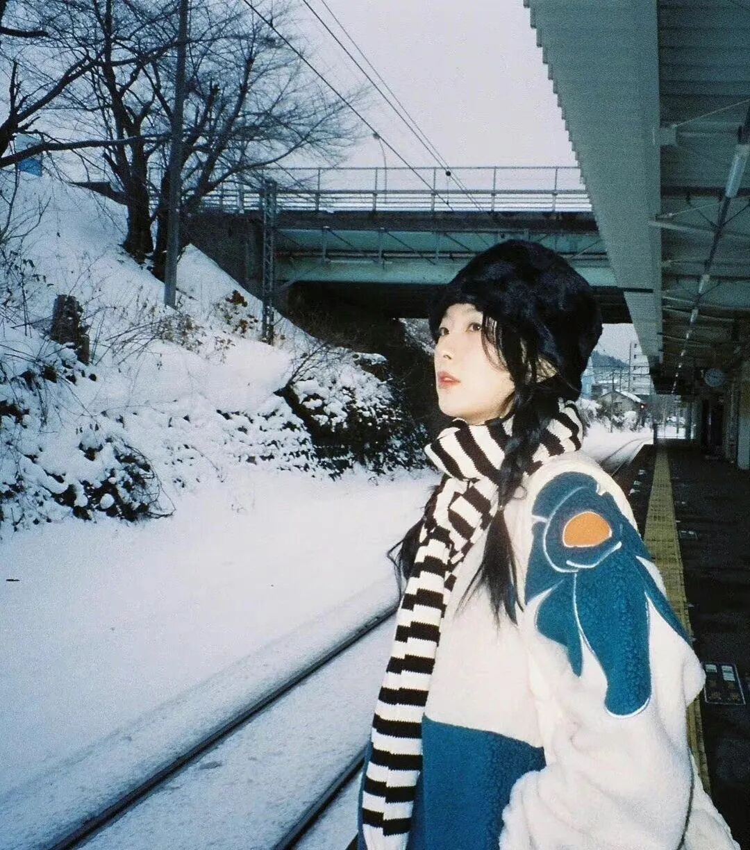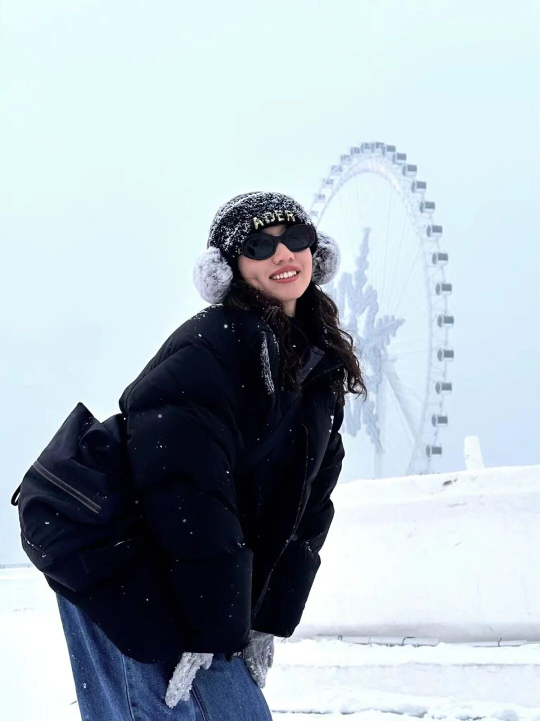 想在冬天的尾巴抓住這份美麗,也需要造型加持才到位。毛茸茸的質感與雪景就有著渾然天成的匹配,難怪大家都對毛毛外套屢試不爽。