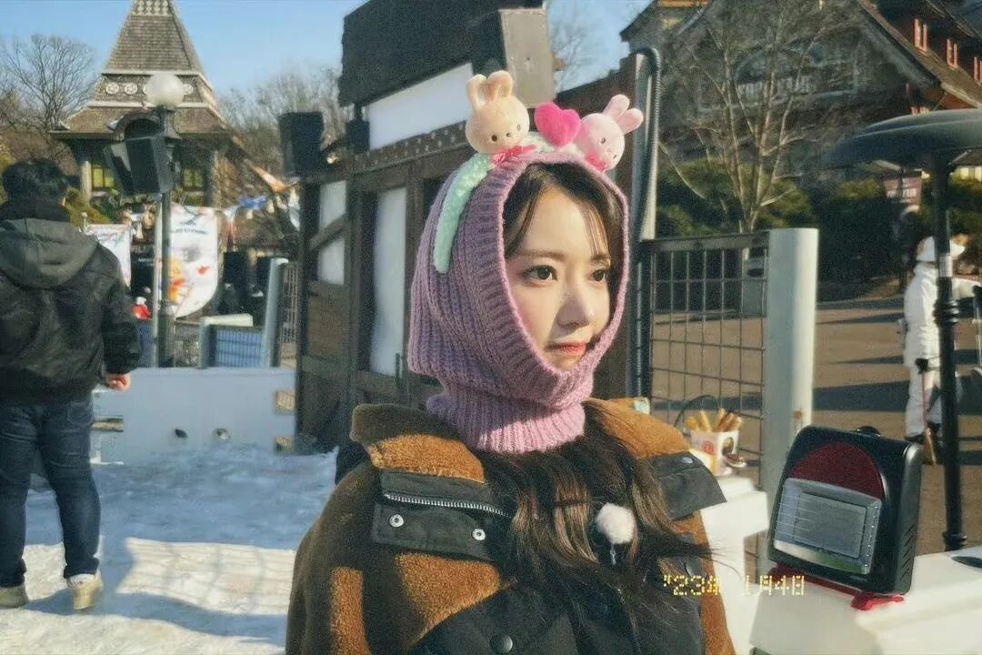 澀琪也很懂用小配飾給自己營造氛圍感這套,她的圍巾主打可愛掛,是能讓整套冬季裝備顯得輕快許多的點睛之筆。
