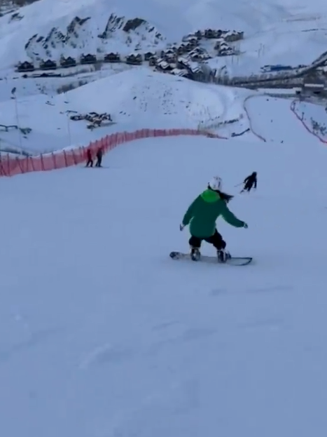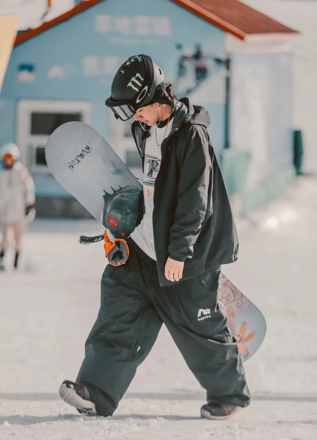酷女孩兒當然是單板為王,大部分單板女明星都鍾愛彩色上衣+黑褲子的配置,低調卻也不至於被淹沒在雪場。再有技術加持,颯得不行。