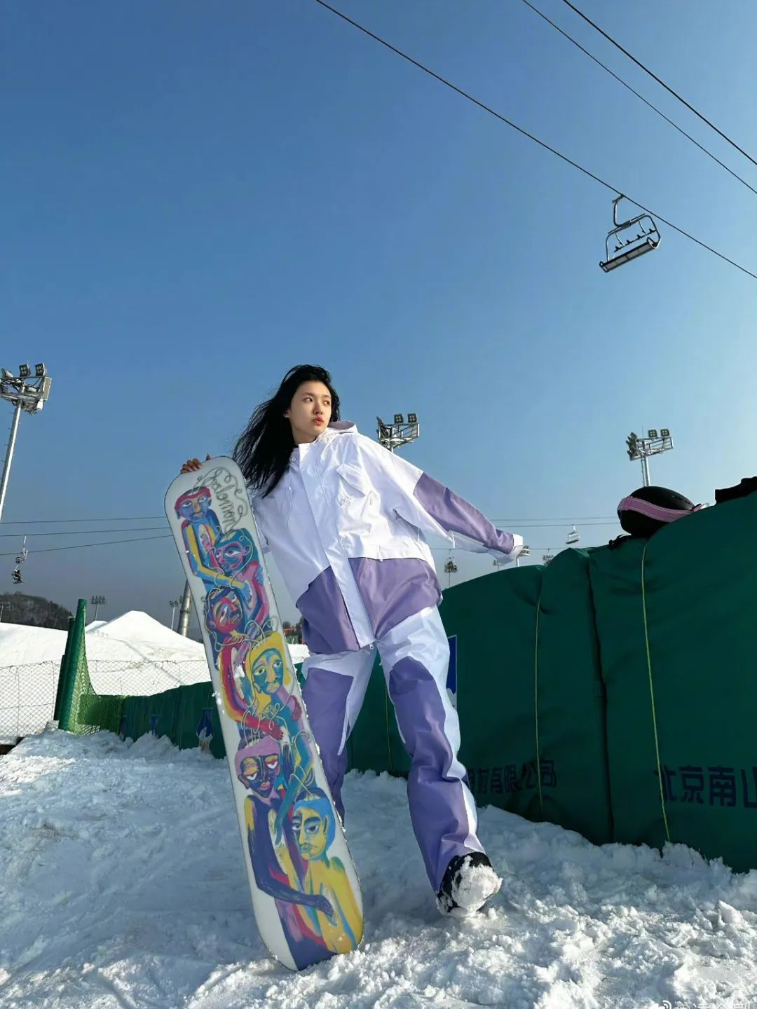 甜美氣質的姑娘也無需對單板望而卻步,吳千語、林允的靚麗雪服保證是雪場一道風景線:黃色張揚、粉色甜美、藍色軟萌。
