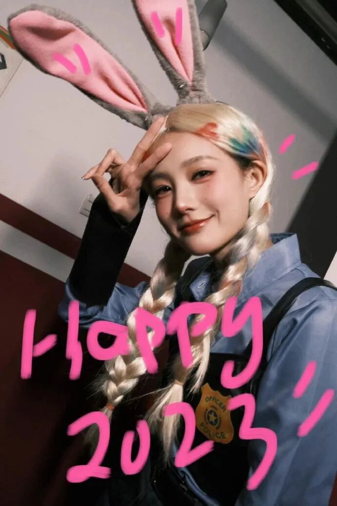 髮色已經是大面積粉嫩了,所以腮紅不用很突出,點綴粉紅色唇妝即可聚焦妝容重點,也不顯得過於誇張,甜而不膩。
