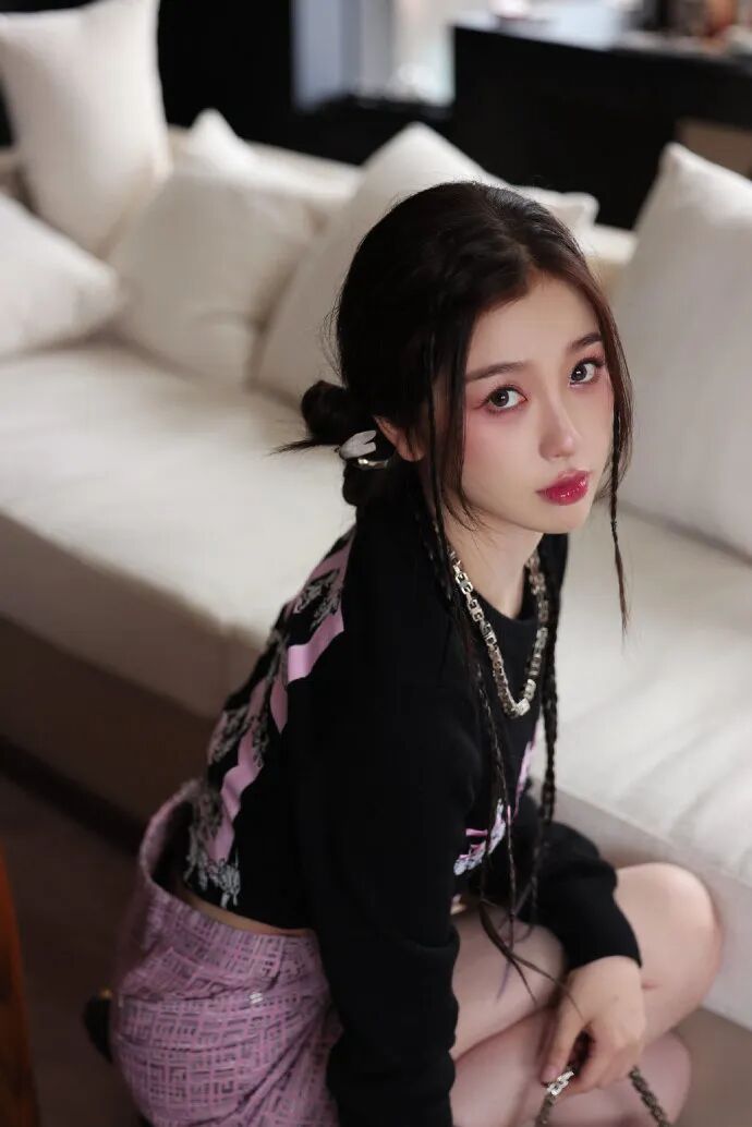 程瀟的粉色高馬尾與粉嫩妝容搭配的恰到好處,低飽和度的霧霾粉可以柔和膚色,粉色眼影暈染在眼下,打造溫柔小鹿般的靈動感,上眼皮用黑色眼線做提亮,平衡粉色的浮腫,讓雙眼更有神。珠光眼影打在內眼角作為提亮增加層次感,讓眼妝更自然。