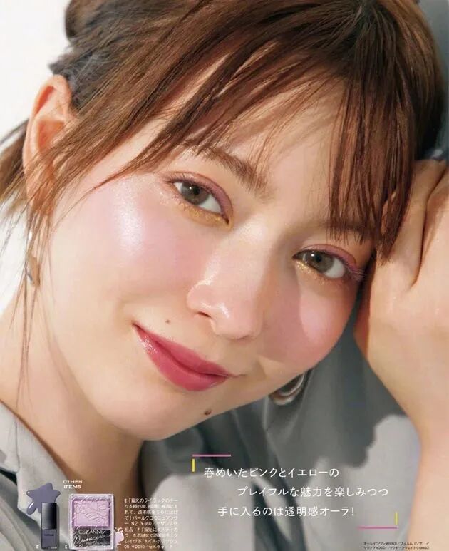 大面積暈染的高光粉色是這一季日雜妝容的趨勢,以粉色調為主,加上紫色、金色的過渡來暈染出層次感,讓妝容靈動嘭起來。