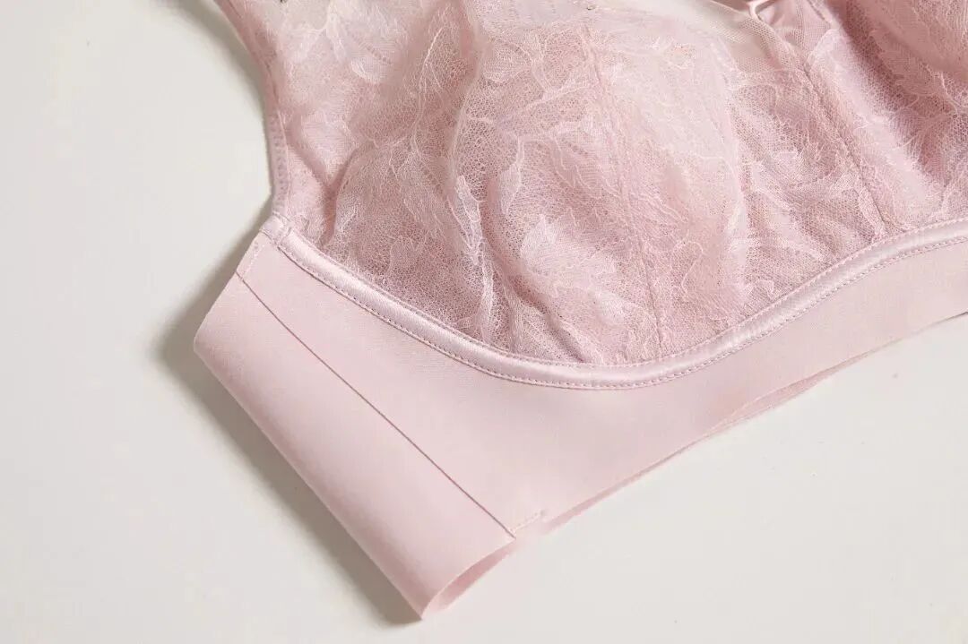 它的顏值也超高👍,我選擇了溫柔的粉色。細膩的蕾絲以葉子為元素,好似在詮釋自然的生命力,春天就是要穿這種浪漫輕盈的款式呀~