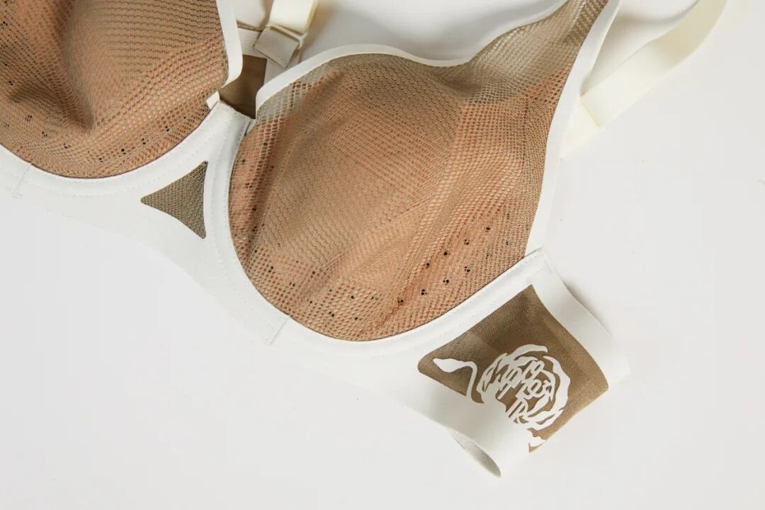 它採用了超級柔軟的面料,細膩親膚有彈性。小小的胸墊上,佈滿了很多透氣孔,穿上身服帖不悶、透氣透溼,感覺再熱的天氣,依舊能夠保持胸部清爽。