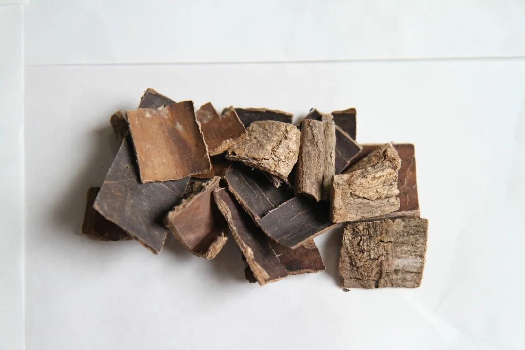 將杜仲的樹皮折斷拉開,可見中間有多數細密、銀白色、韌性較強的細絲。這種絲為何物?為什麼古人炮製杜仲常說要“炒斷絲”呢?科學家告訴我們,這種絲是一種硬性橡膠,化學上稱為杜仲膠。除木質部外,杜仲樹的葉、根、樹皮和果實都含有杜仲膠。杜仲經炒制後,杜仲膠被破壞,確實有利於有效成分的煎出。