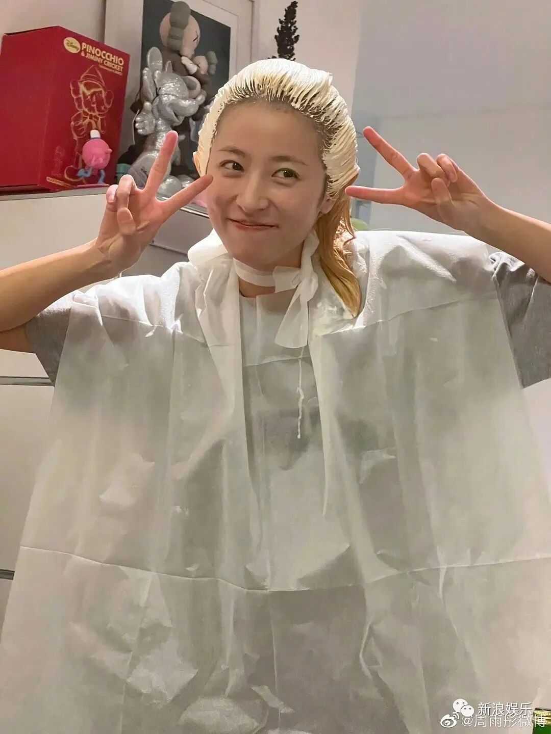 雖然周姐1月是粉發,但最近的照片看起來粉發都掉成了金髮。