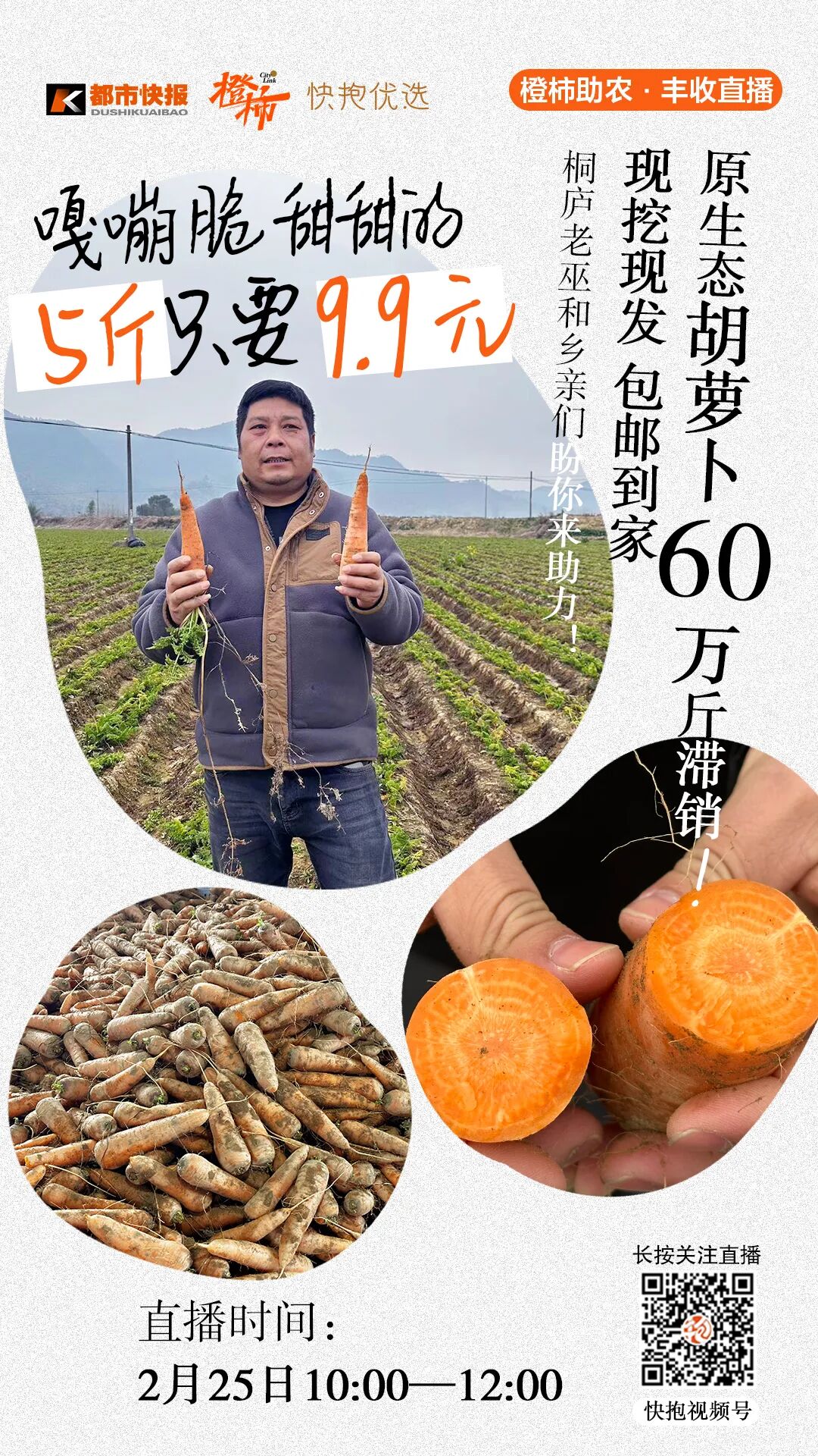 甜甜的,嘎嘣脆!5斤只要9.9元,桐廬原生態胡蘿蔔滯銷,盼您來助力!