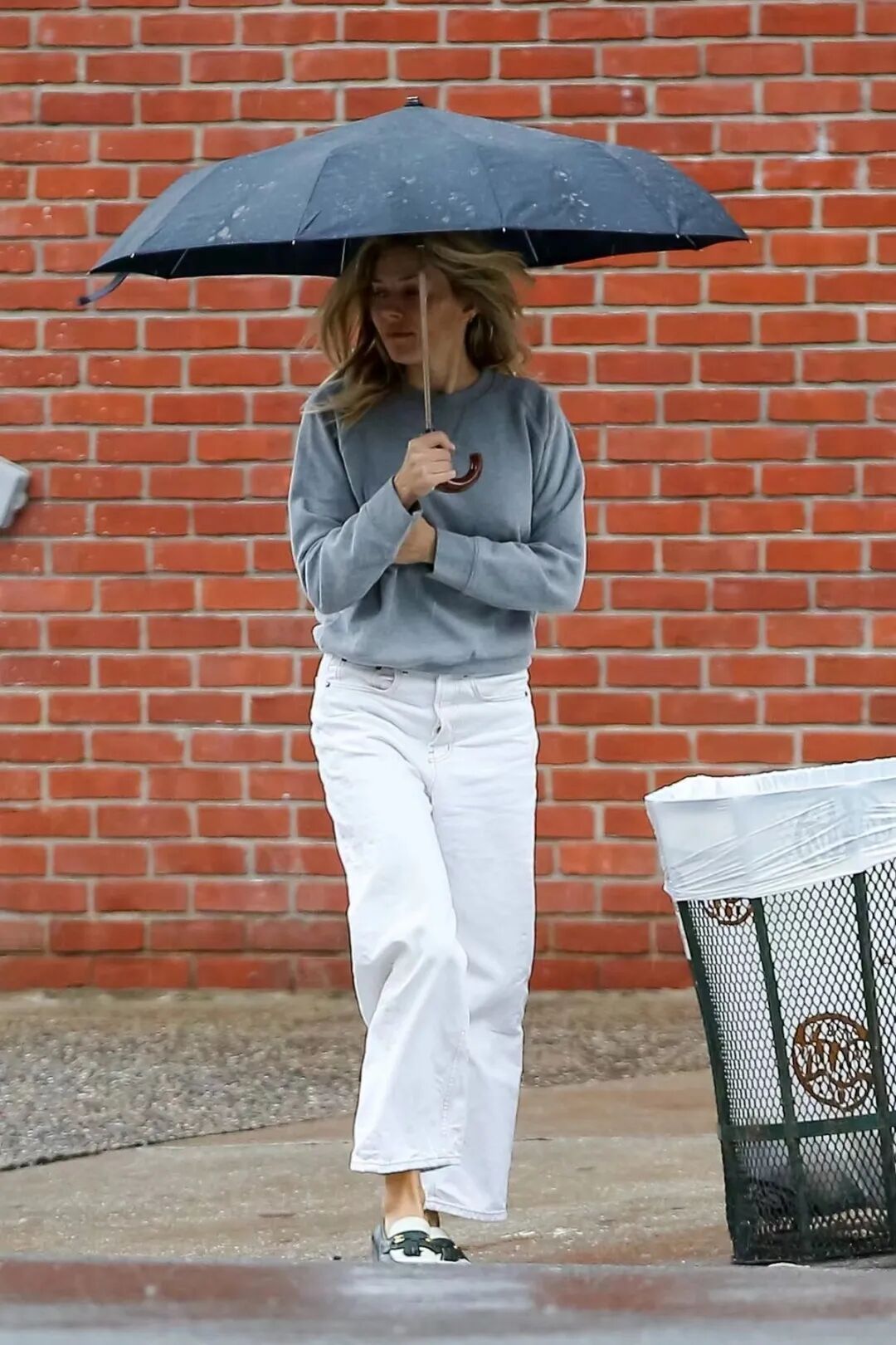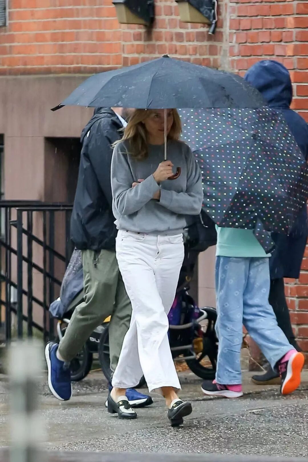 西椰娜接女兒放學中,她私下裡的日常裝扮倒是蠻好借鑑誒:灰色套頭衫看起來質感很好,搭配白色牛仔褲清爽舒適。