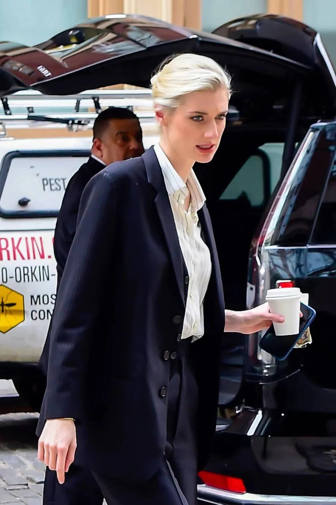 羽毛感套裝好仙好靈,手間的鑽石配飾悄咪咪增加氛圍感,垂在兩肩的金髮讓她看上去好像個芭比。