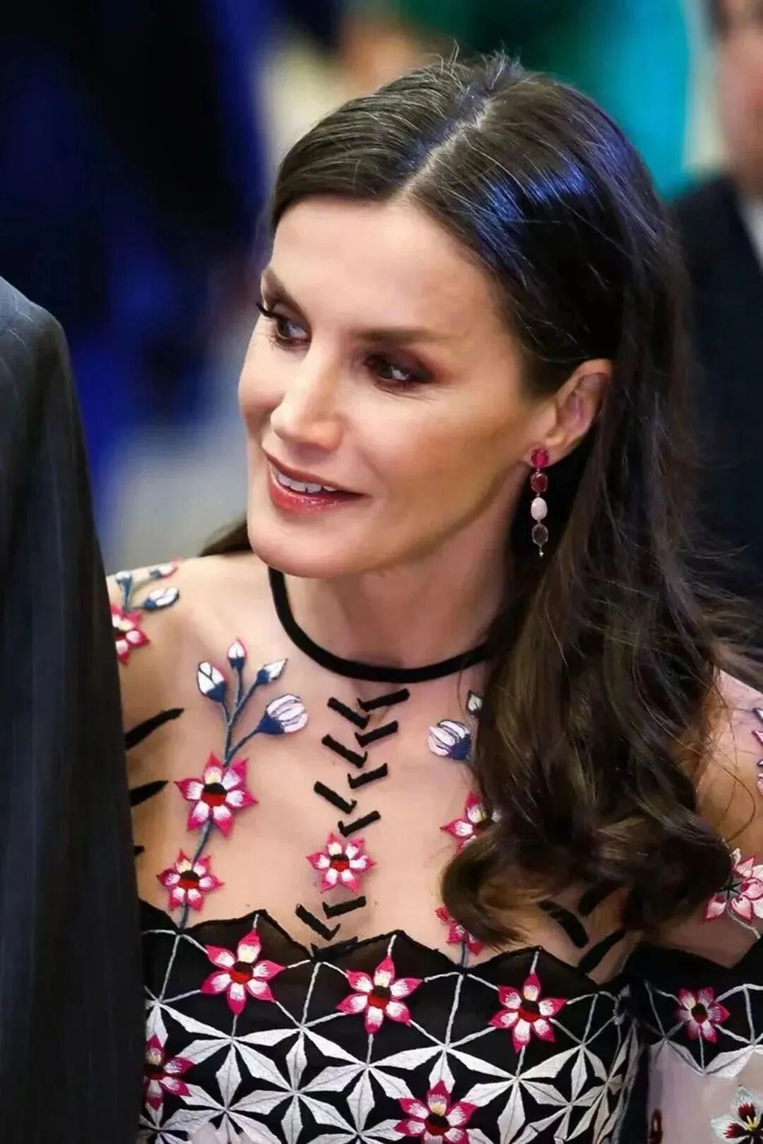兩口子日常“上班”中,這次是為ARCO藝術展揭幕。萊後粉色長裙上身溫婉動人,耳飾一抹綠色,悄無聲息之間就點綴了整體。