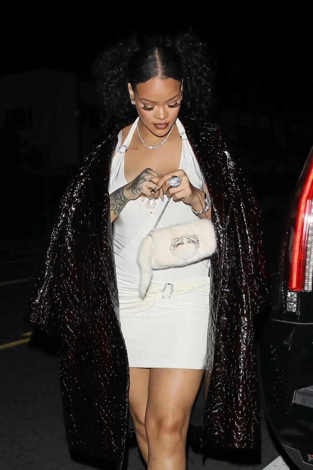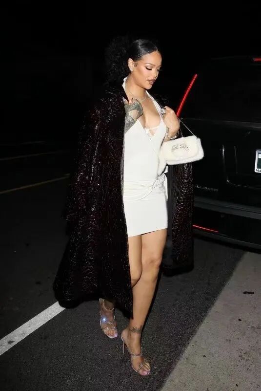 這次的包臀小短裙外搭白色羽絨背心很別出心裁,腳下高跟鞋上的紅玫瑰是亮點,讓整體造型都“活”了起來。