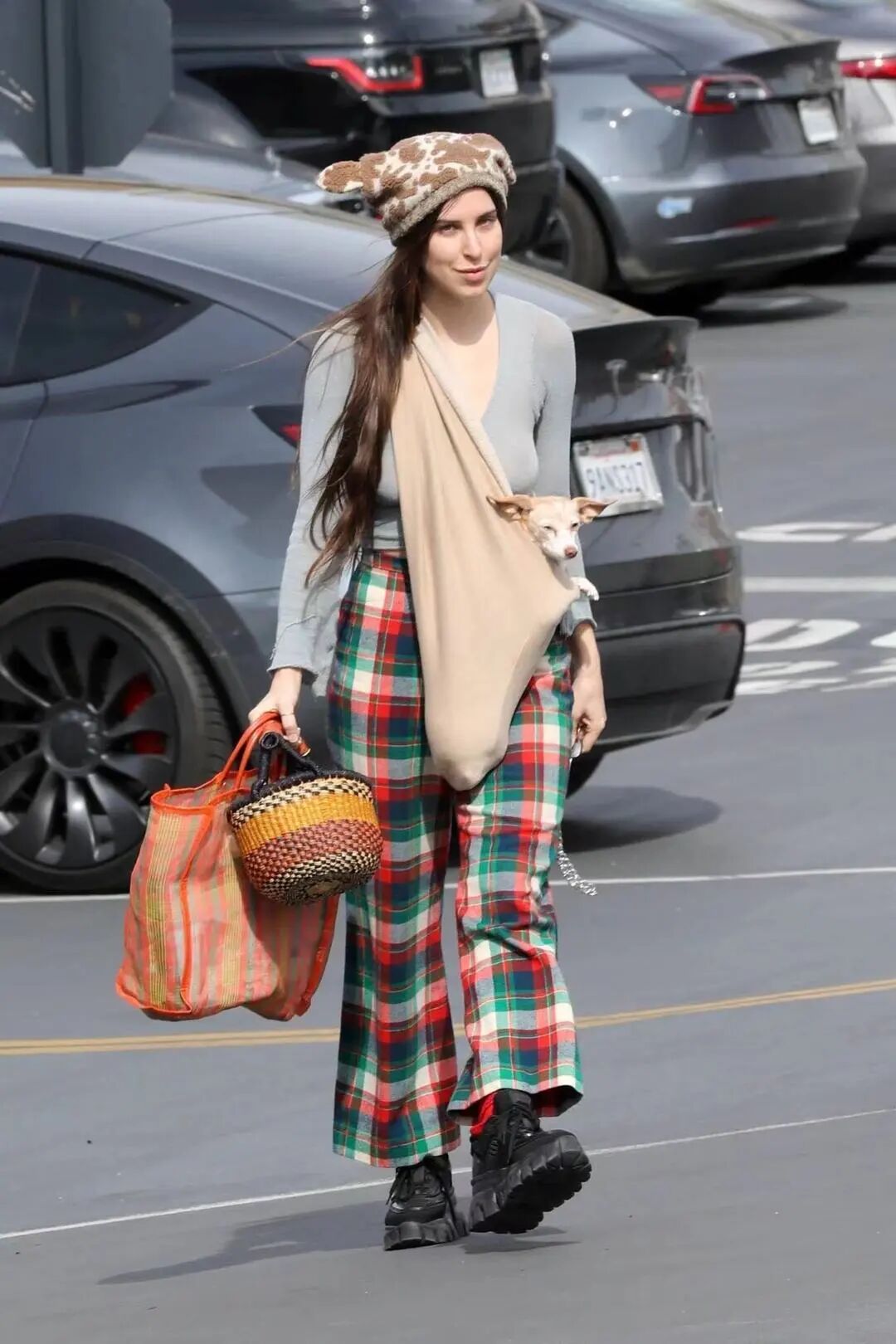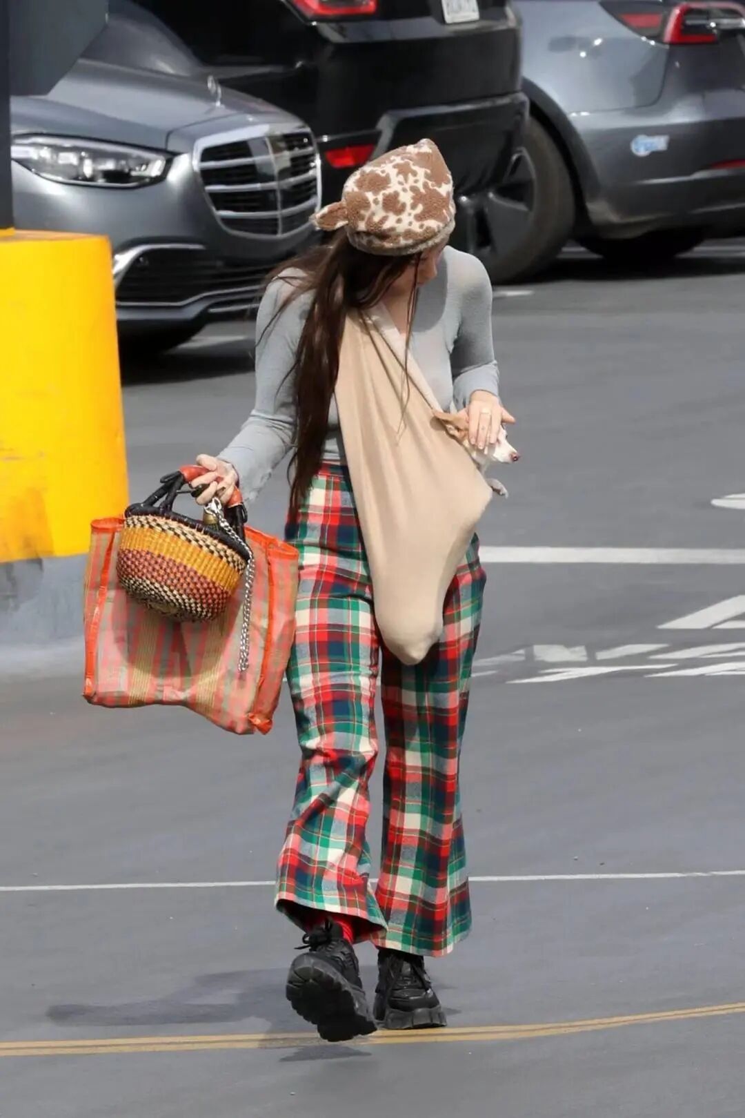 Scout一身鄉村風行頭看起來很悠閒的樣子,拎著大包小包收穫頗豐。格子褲和編織包都很蘇格蘭~