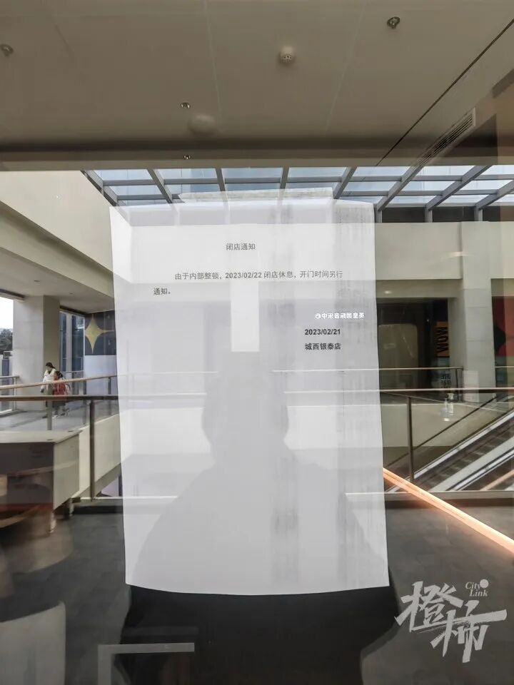 最後,記者去了位於城西銀泰城4樓的門店,同樣大門緊閉,門口貼了一張簡單的說明。