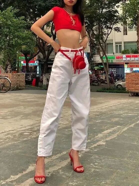 純烈火紅可能會有些顯招搖,如果怕不好打,選擇那些帶圖案、花紋等的款式,在增加層次感的同時,也能夠稍稍削弱烈火紅的存在感。