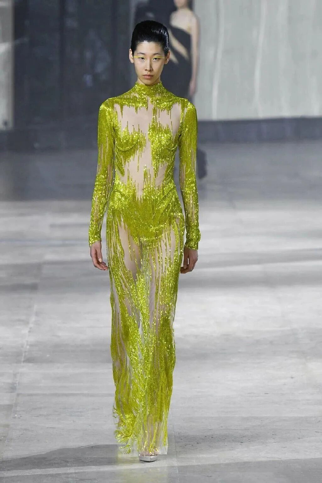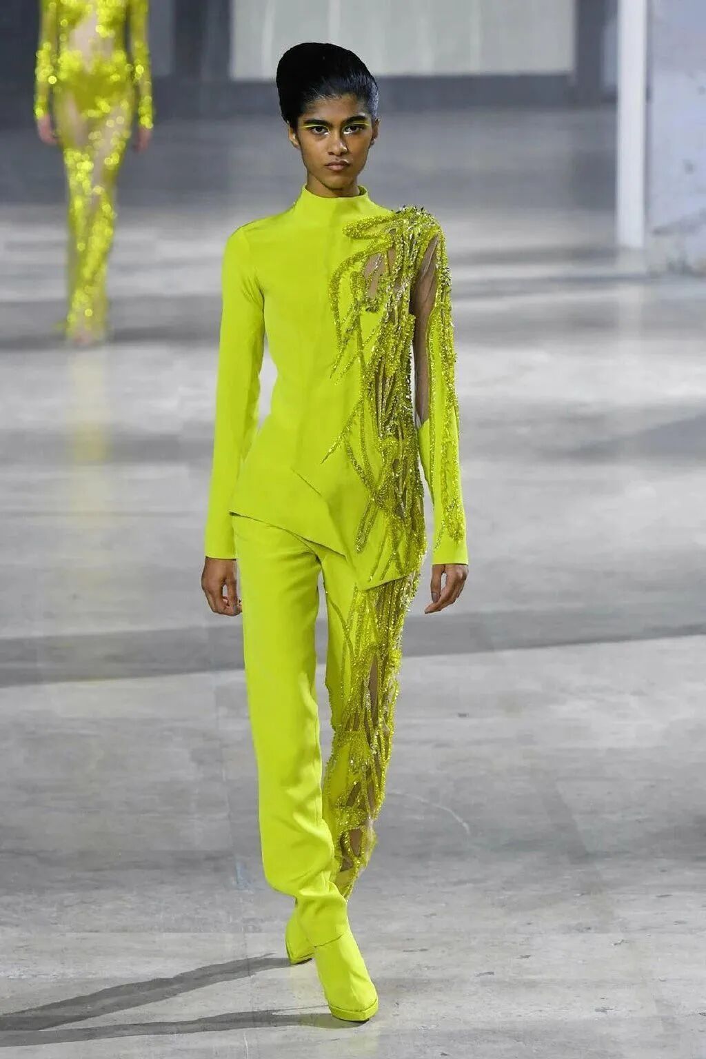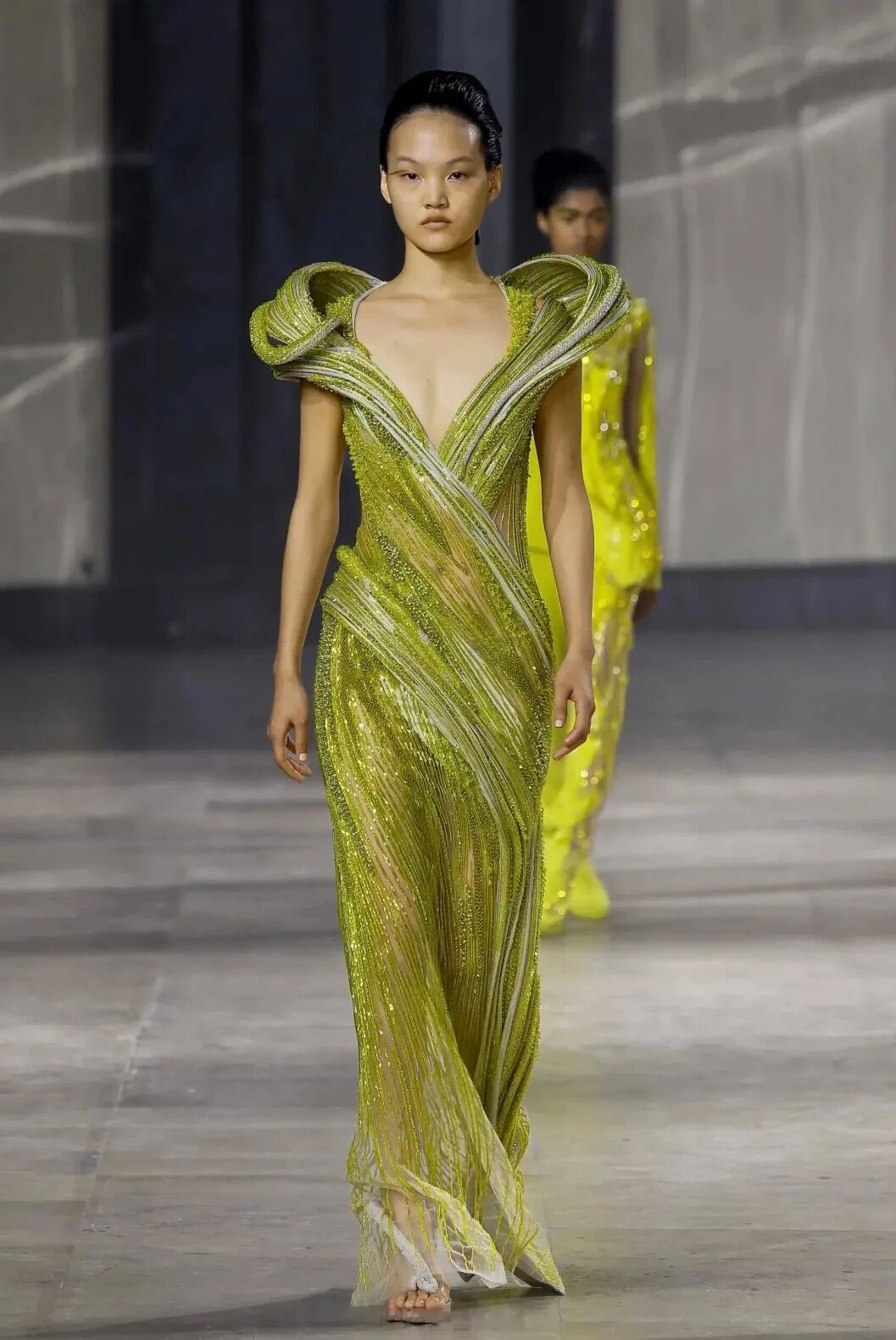 綠與黃的平衡,又帶來了一種獨特的異域風情。在印度品牌 Gaurav Gupta 的首個高級定製系列中,就有不少關於愛情鳥綠的應用。