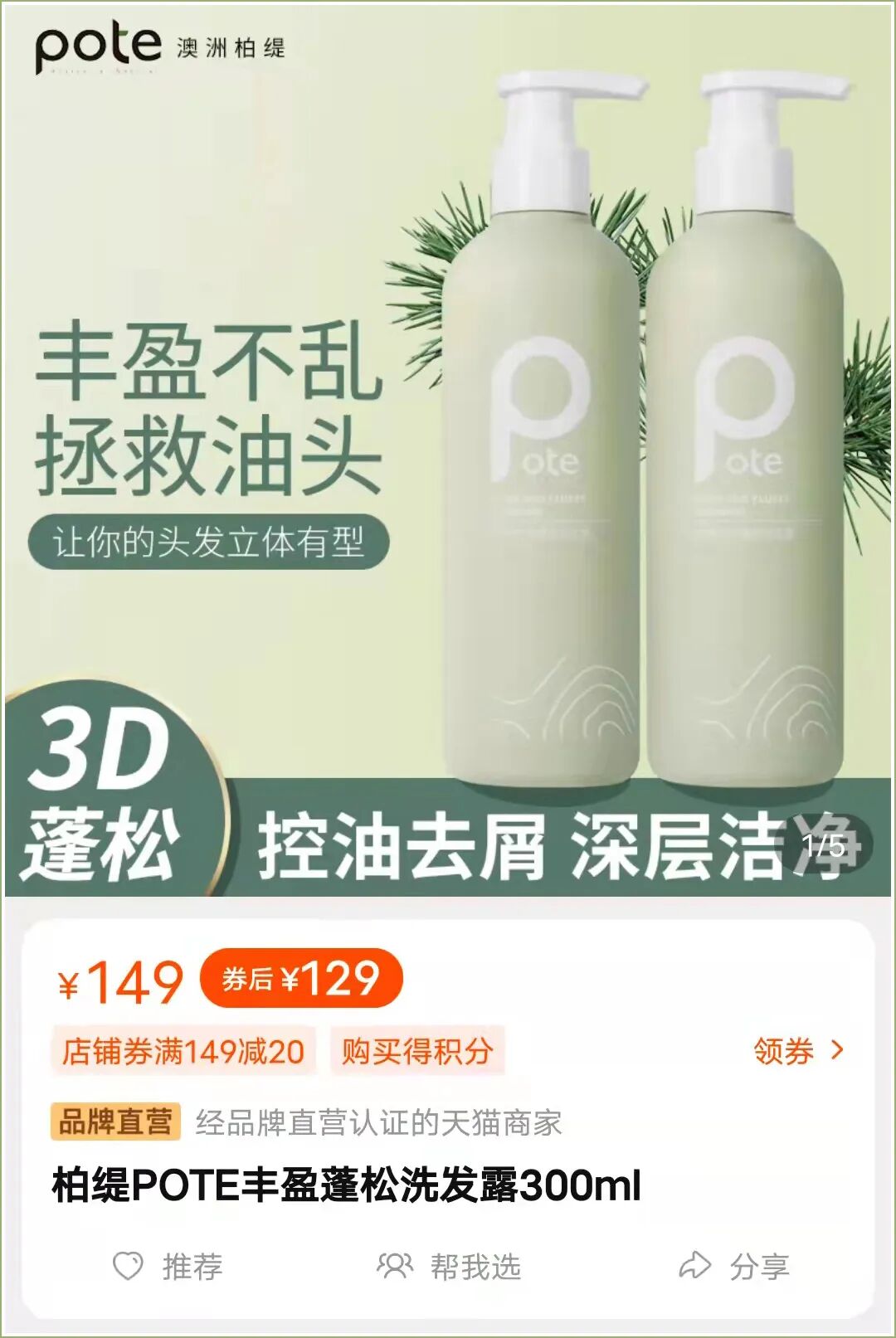 *天貓掛價¥149/瓶,做活動券後也要¥129/瓶(是目前店內單價最高的洗護單品)