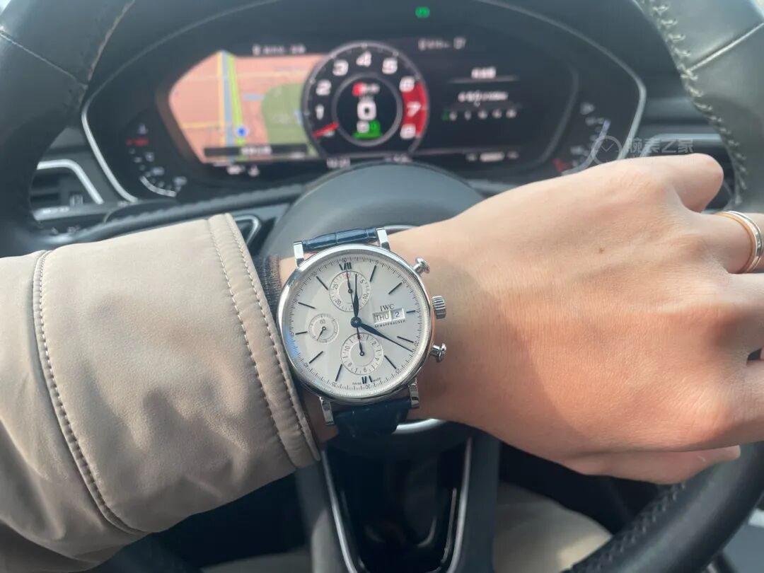 等老婆選完了護膚品,跟我說要買就買第一眼看上的,於是回到萬國準備拿下葡計,跟銷售聊了下這塊表的功能,才發現沒有日曆功能,葡計在我心中一下就不香了。再看柏計,有計時有日曆,於是當機立斷,選擇了長相差不多的柏計,價格還要比葡計便宜,我的手錶可以沒有計時,但是一定要有日曆。