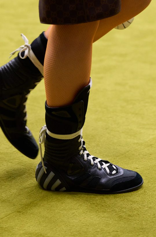 經典的古馳樂福鞋採用橡膠鞋底設計,本季的方頭涼鞋、寬筒靴,以及靈感源自酒神(Dionysus)手袋的虎頭扣涼鞋,均採用小貓跟設計,拳擊靴與籃球鞋則為本季注入運動活力,這些鞋履讓你輕鬆遊走於每個場合。