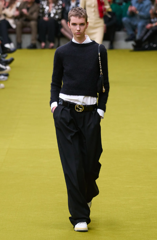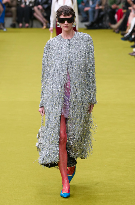 在GUCCI全新創意總監Sabato De Sarno還沒到任的空窗期,品牌現有設計師和手工匠人們共同協作,通過這一季的54套作品回溯 Tom Ford 在 1990 年代構建的GUCCI式性感到Alessandro Michele如今創造的復古華美詩篇,為我們帶來了一場剖析品牌內核的時裝秀。