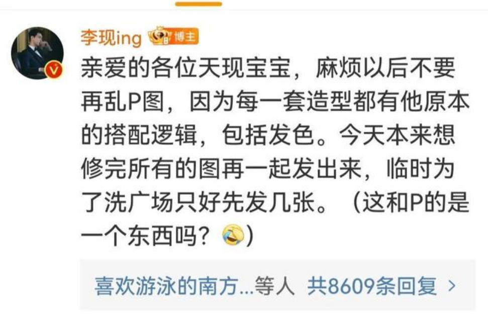然後李現直接下場發了銀髮照片洗廣場,還在評論裡面告訴粉絲不可以亂P圖。