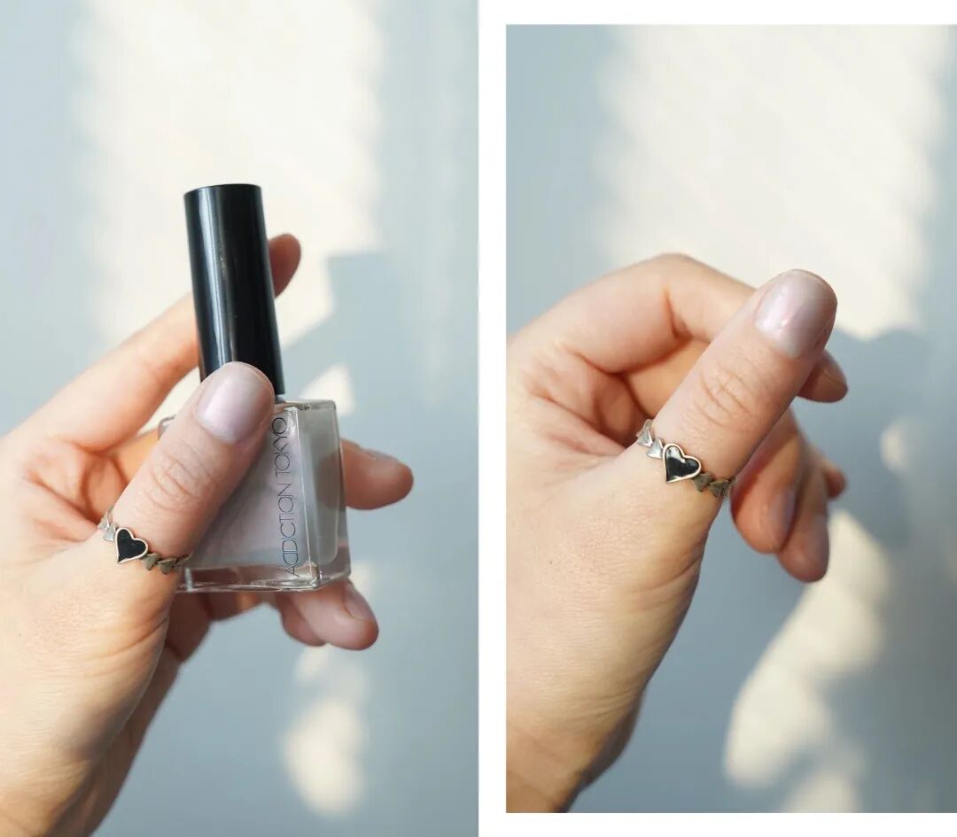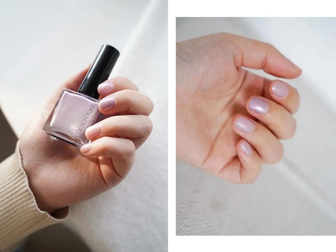這個丁香紫很適合春天,中指我塗了兩遍,其他只塗了一遍,有透透的日系感。