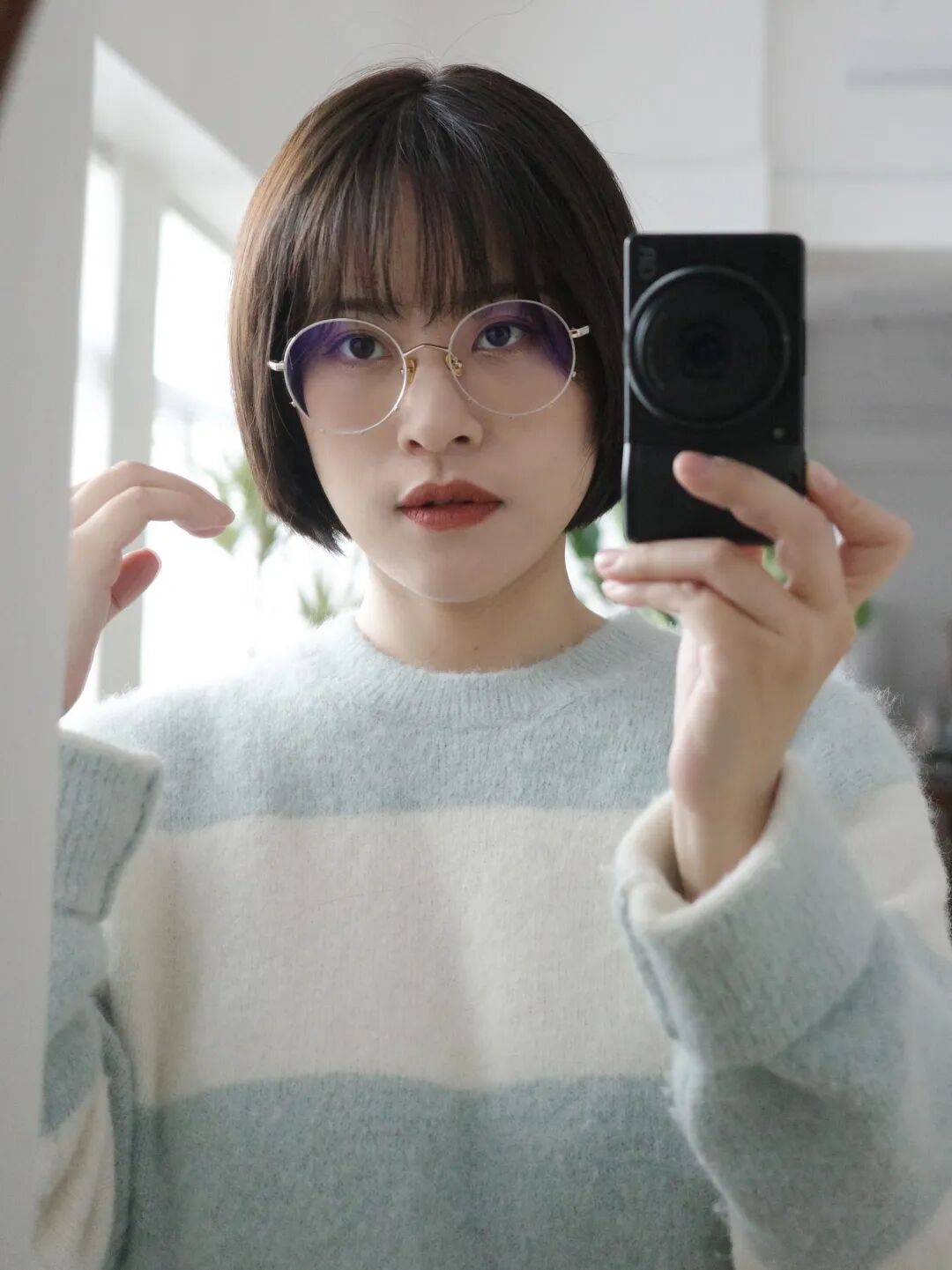 而且你有沒有發現,它下半部分的圓弧範圍比較大,所以會很適合我這種中庭長的女生,縮短中庭效果巨好!戴上就是很乖巧很減齡,顯得臉更圓潤可愛。
