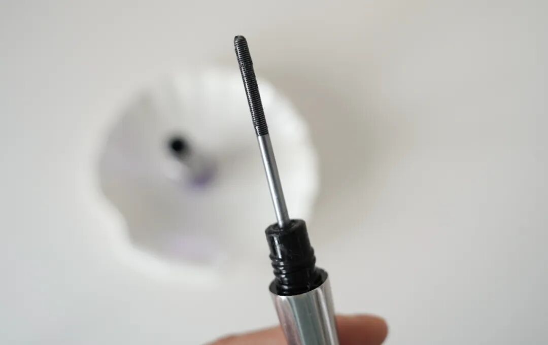 刷頭跟其他睫毛膏都不一樣~是這種金屬刷頭,上面有細細的凹槽,還有一些小小的纖維。