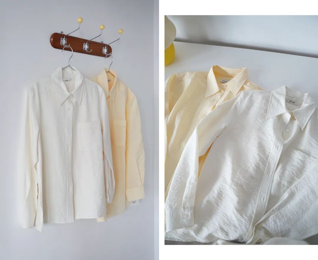 然後說下Rewear買的絲質襯衫,我入手了兩件,一件白一件鵝黃,都是有這種褶皺紋理感,有lemaire的文藝強調。但是黃色這件最小碼對我來說都過大(適合165以上的女生),所以退了。