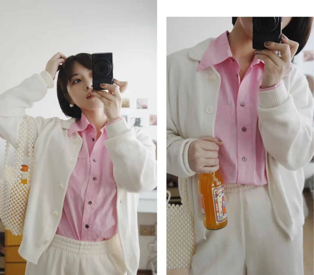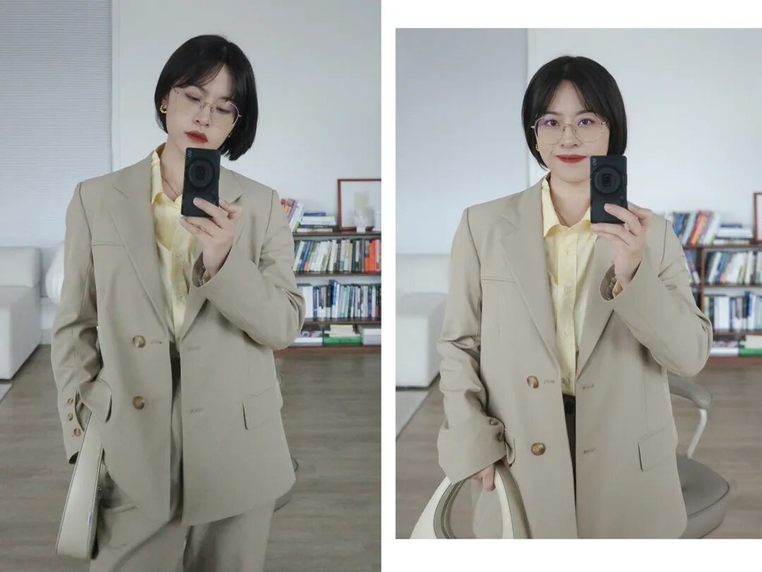 它很適合當內搭!大面積穿總感覺太亮了,搭個白色針織更加日常,還能擋風,改天再試試搭西裝啦~