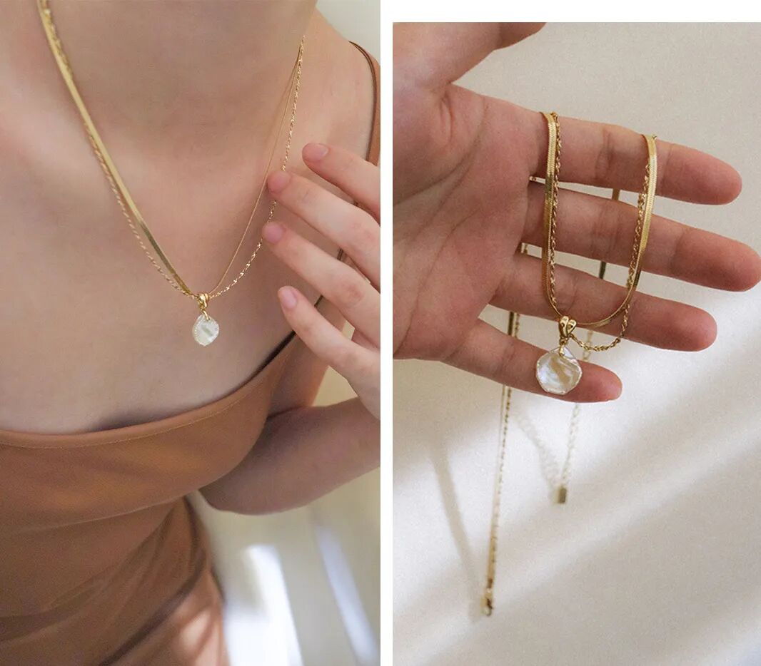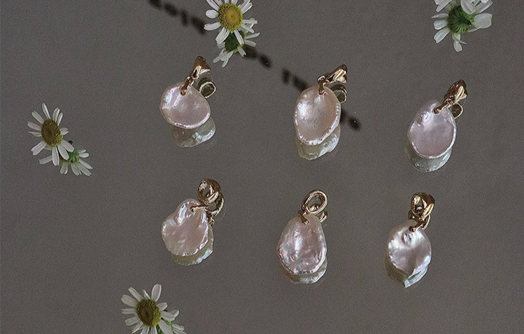 中間的珍珠吊墜特意選了異形,彷彿春天的落花花瓣。因此每一條都在開盲盒,獨一無二。