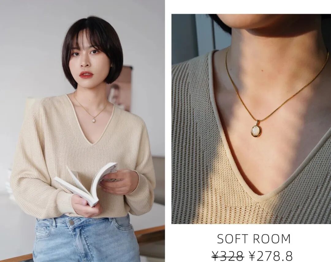 41+6cm的長度,正好落在鎖骨下方,配上件低領的針織,恰到好處的露膚,有種優雅性感的氛圍。