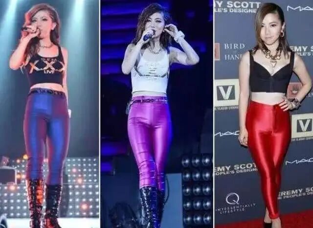 鄧紫棋的腿並沒有那麼纖細、修長,在這種貼身的皮褲下也顯得特別不自然。這反光的材質,又似乎無時無刻都在吸引著別人的目光,這個時候還是低調點比較好,如果換上啞光的效果說不定就會好很多。雖然黑色可以從腿型上改善腿型,但這樣的皮褲只會起到反作用。胯比較大的女性還是穿闊腿褲或者寬鬆的褲子更加合適,效果也會更好。