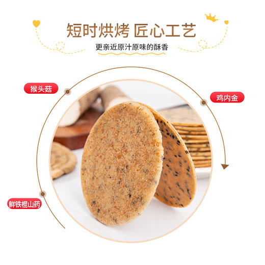 製作而成的山藥雞內金薄餅再無其它添加物,芝麻、雞內金的香,核桃、猴頭菇的細膩、雜糅其中,從舌尖口腔驚豔到大腦片片酥脆,健康美味。