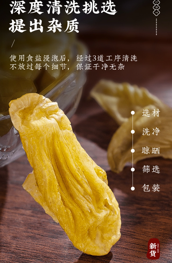 使用用食用鹽浸泡後,經過三道工序清洗,不放過每個細節,保證乾淨無雜質,農家大公雞,跑山雞,自然晾曬 無硫燻。