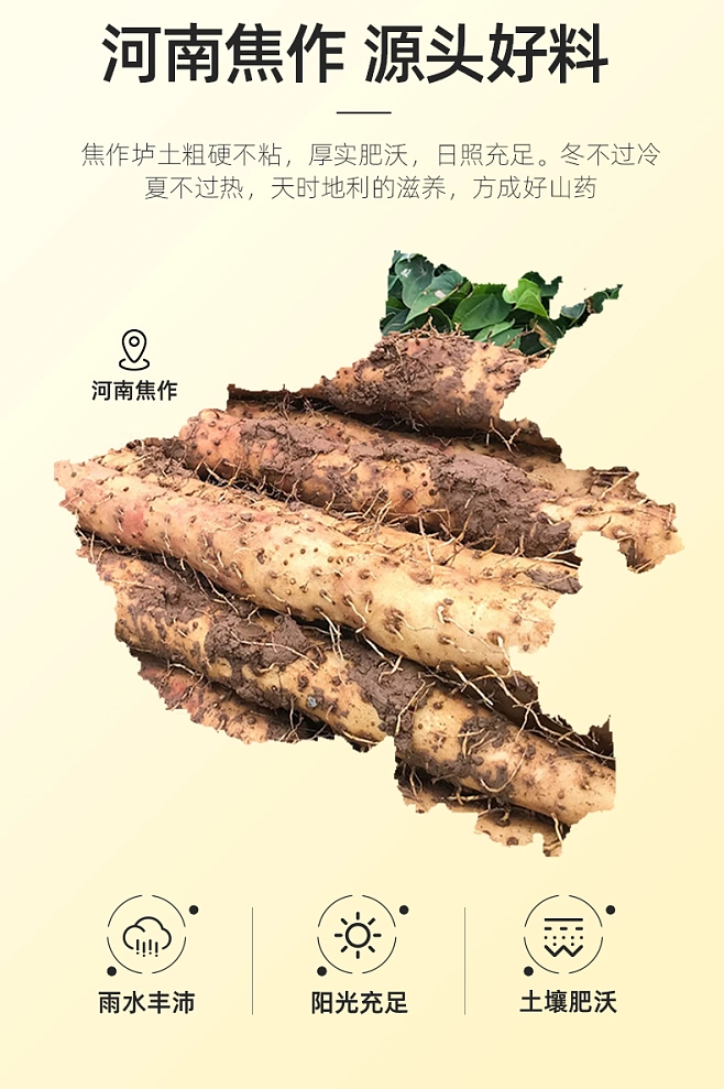 醫書上記載最好的山藥大都產於懷慶,也就是河南焦作。這裡的壚土粗硬不粘,厚實肥沃,天時地利的滋養才能有如此上品山藥。