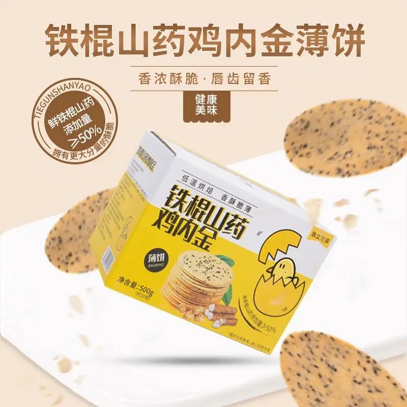 製作而成的山藥雞內金薄餅再無其它添加物,芝麻、雞內金的香,核桃、猴頭菇的細膩、雜糅其中,從舌尖口腔驚豔到大腦片片酥脆,健康美味。