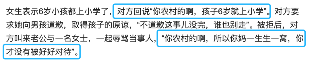 年初,6歲男童被媽媽帶進女廁事件中,男童父母多次圍繞“你農村的啊”展開辱罵/圖源:九派新聞