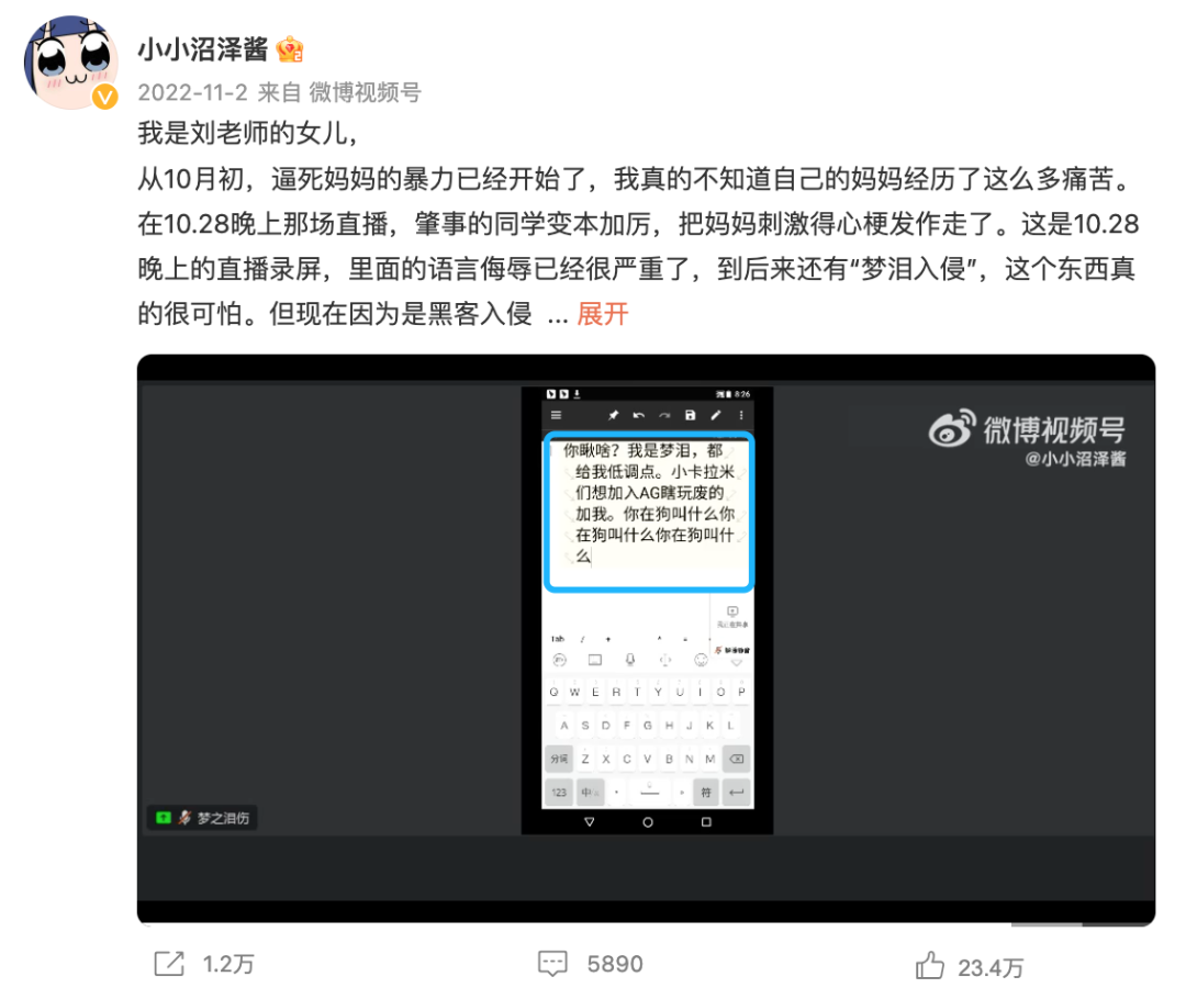 甚至她去世後,都有疑似入侵者對賬號在微博上大言不慚地表示: