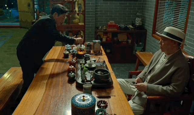 在這裡,導演只用一壺茶,就說清了老默的狠與柔!