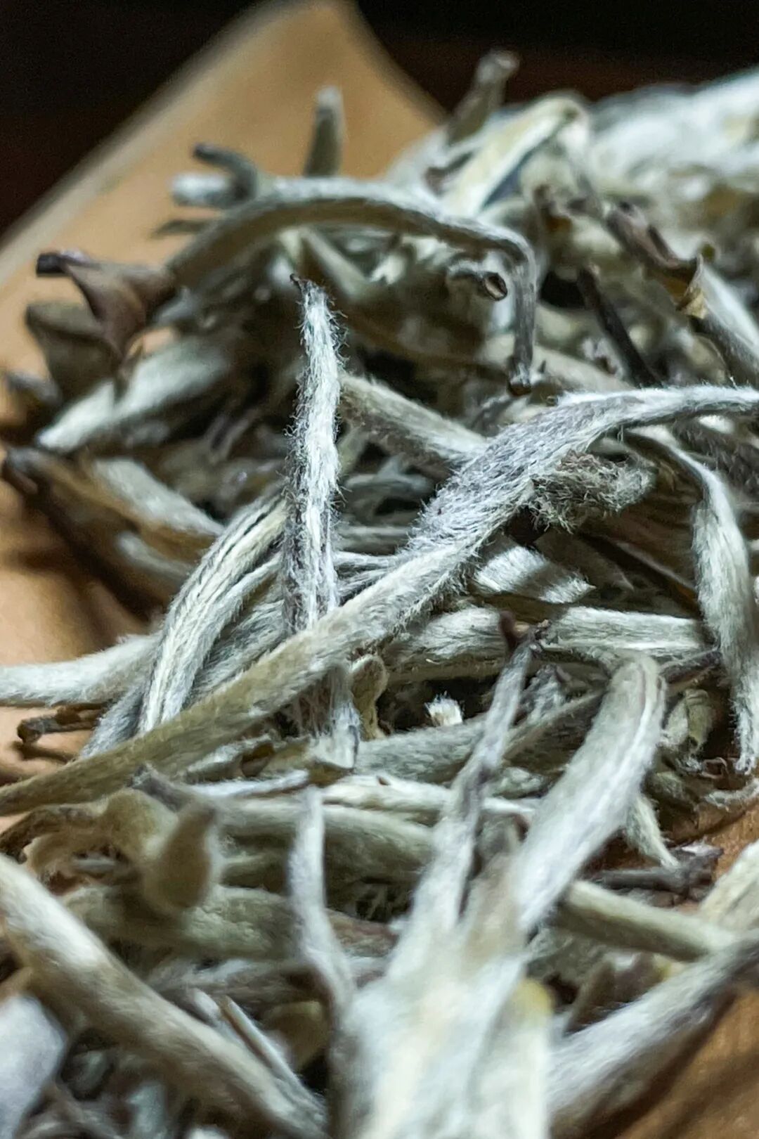 “白茶”因成茶外表滿披白毫,色澤銀白灰綠而得名,老白茶中,珍藏多年的,毫銀針很是珍貴。攝影/周昭輝