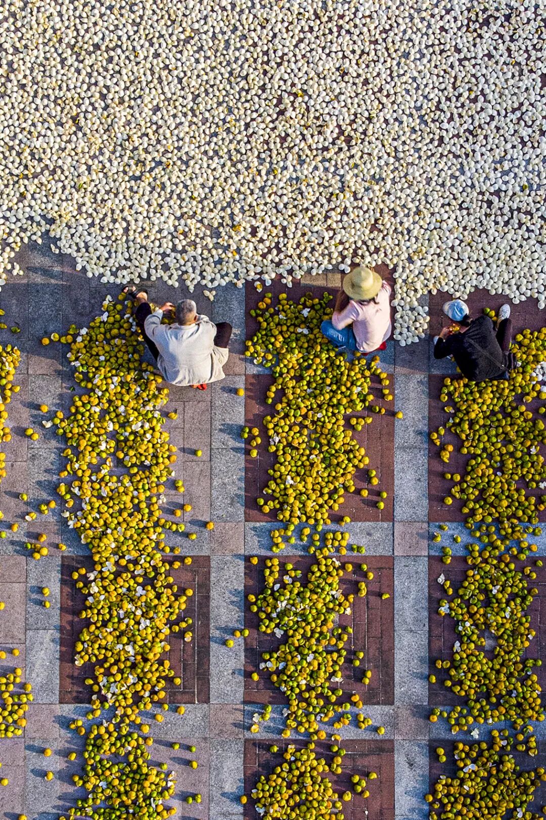 “秋風起、曬陳皮”,在廣東新會,每年深秋都能看到家家戶戶曬柑皮