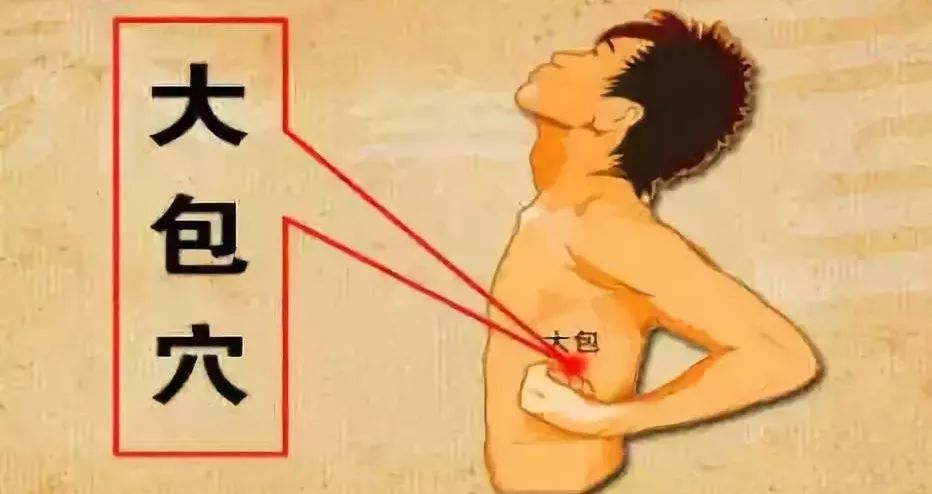大包穴:是脾經的最後一個穴,在肋骨這塊兒腋窩直下6寸處。“大包”就是大包大攬的意思,比如急性腰扭傷、急性脖子扭傷、急性肋間神經痛,大包穴都能治.