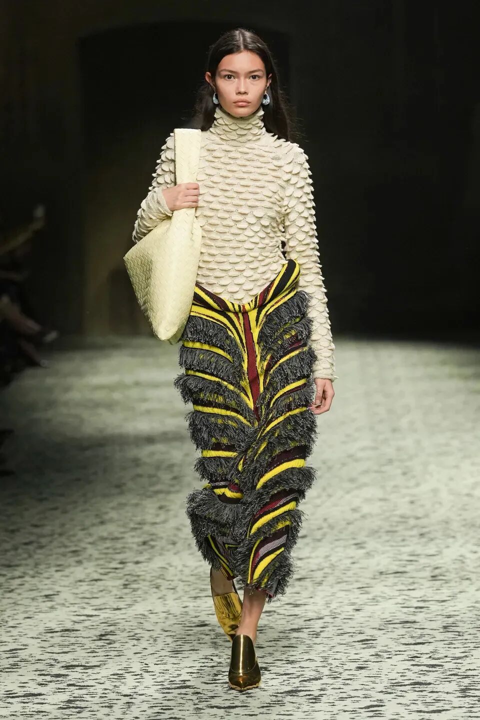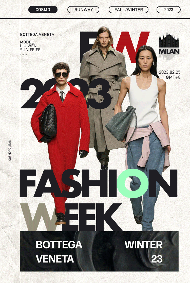 這些奢華面料也被運用在了“大地女神”“花神”“海妖”等充滿神話色彩的角色中,彷彿將波提切利的作品《春》真實地帶到了大家眼前。BOTTEGA VENETA 2023秋冬系列繼續用創新方式詮釋意大利手的工藝,Matthieu也繼續穩定發揮著“細節控”特有的精緻。
